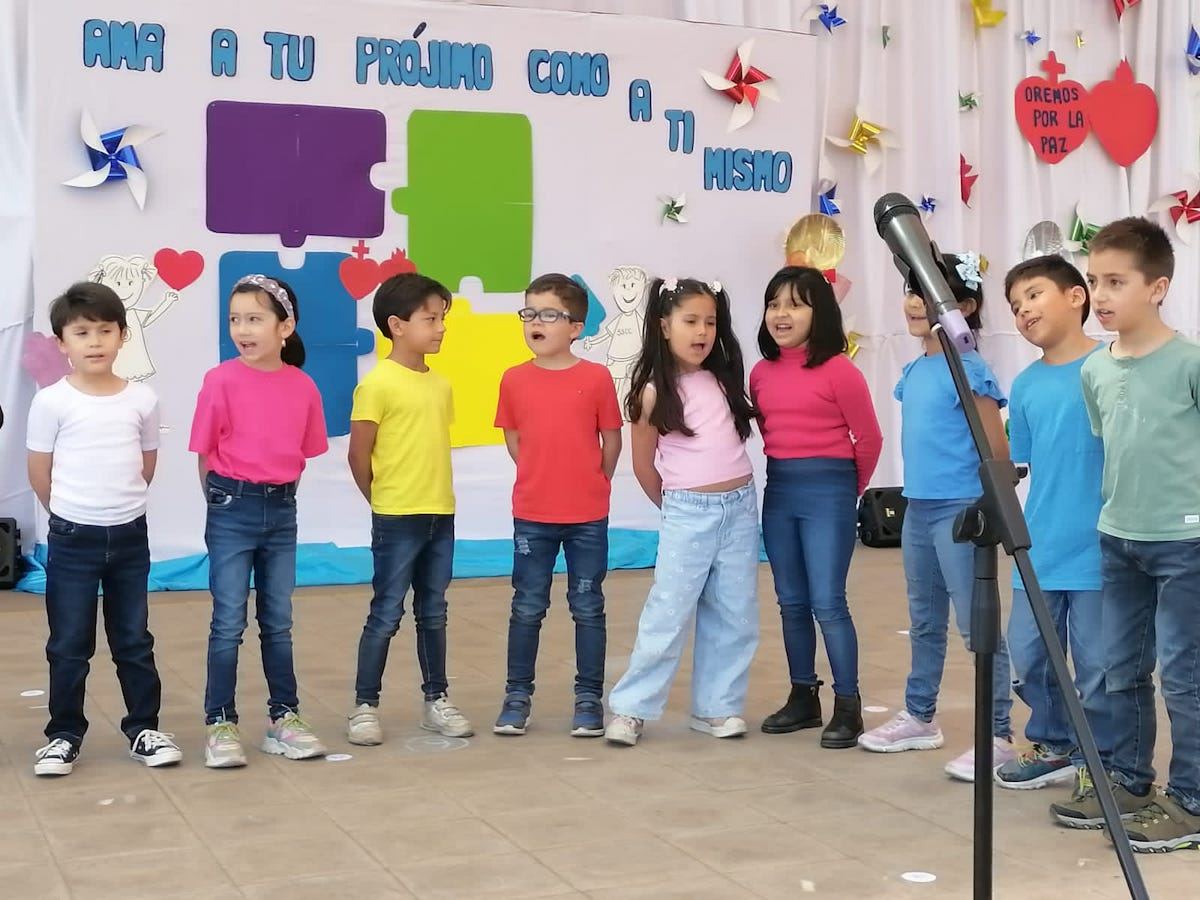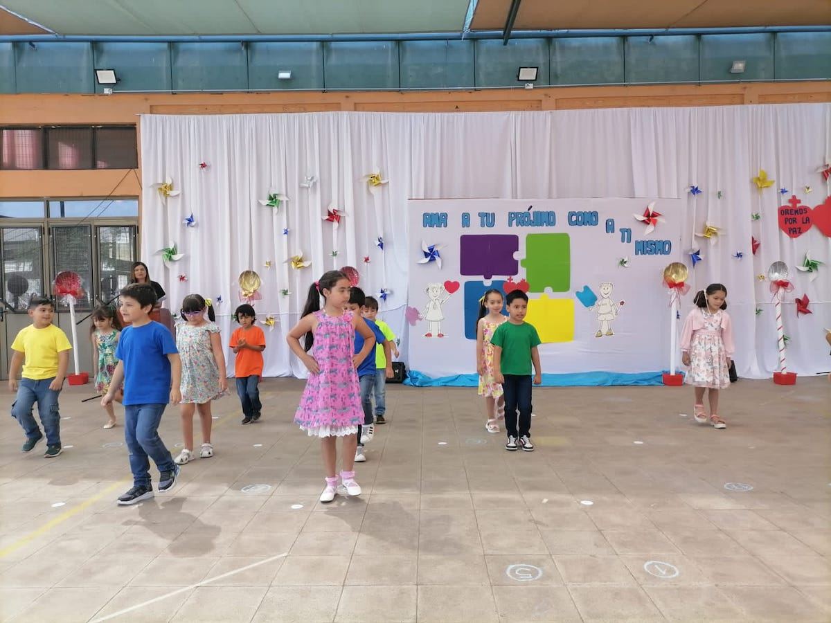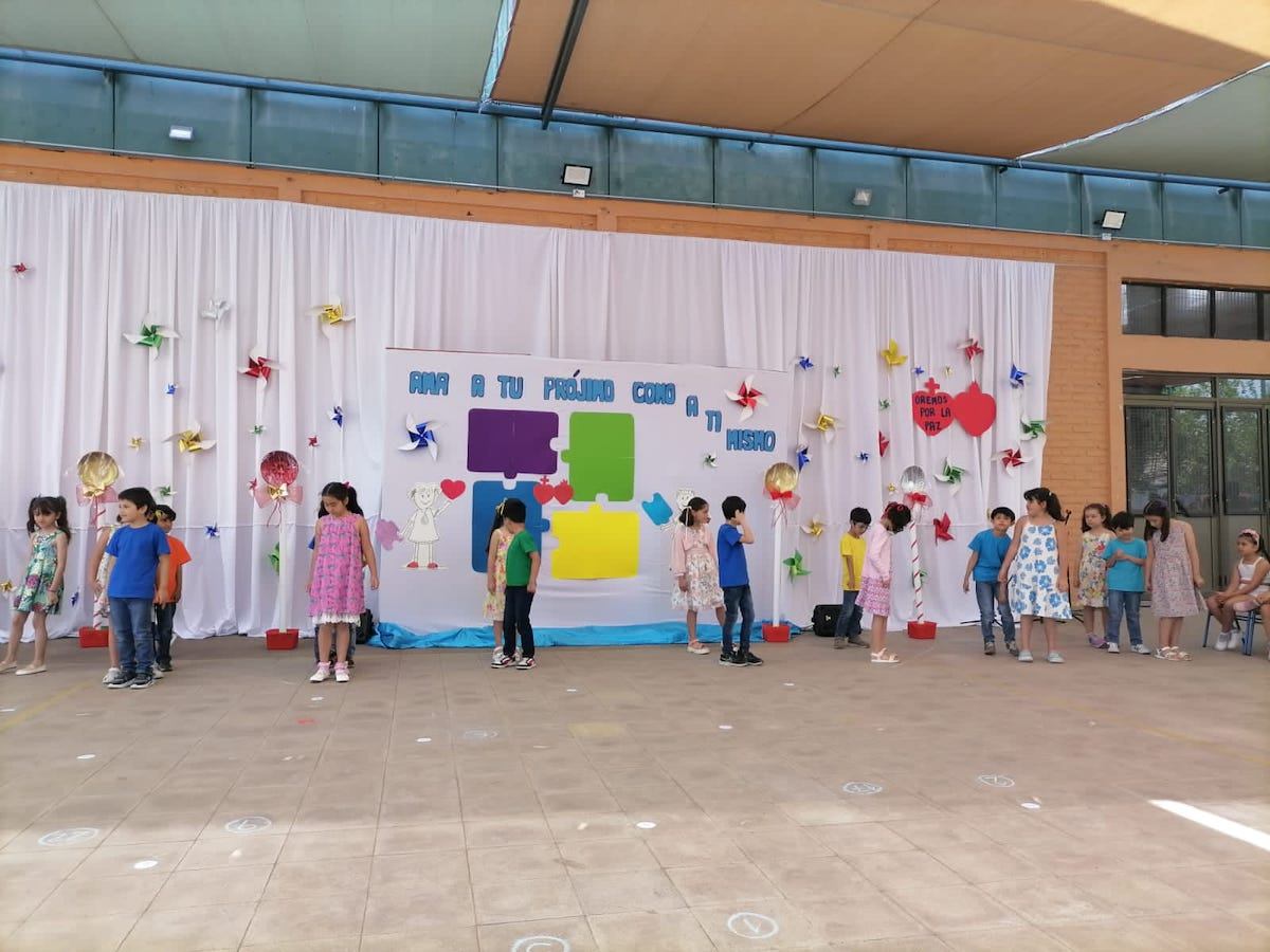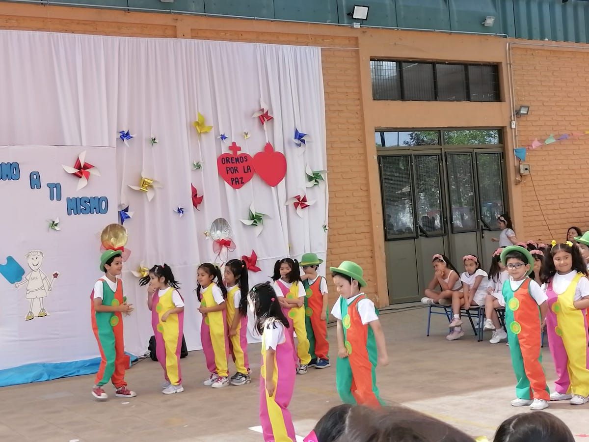 Por ello, en los actos de cierre del año escolar, nuestros apoderados pudieron disfrutar de bailes y cantos realizados por nuestros estudiantes que apuntaban a este valor, y también se reconocieron sus esfuerzos y éxitos en los ámbitos académico, deportivo y valórico. Nuestros estudiantes de cuarto básico y octavo básico, que demostraron su adhesión a los valores de nuestra Congregación, recibieron la medalla Padre Damián y Virgen de la Paz, respectivamente.