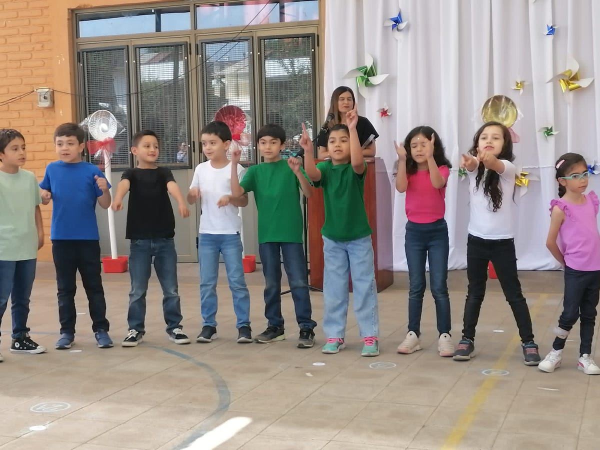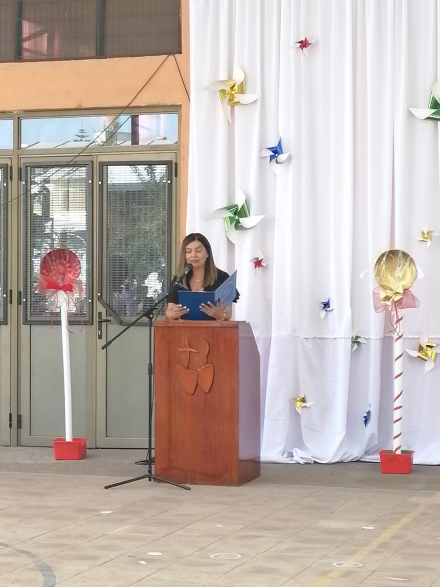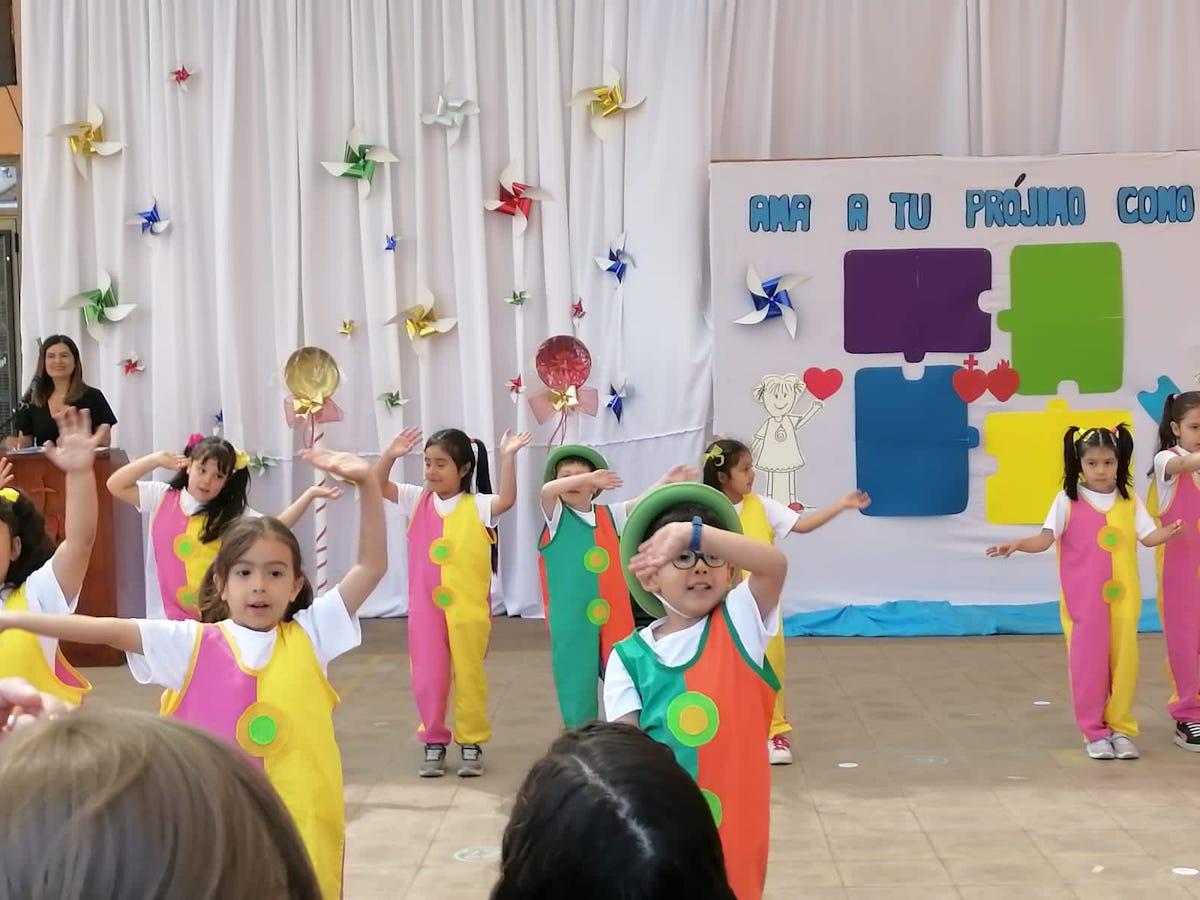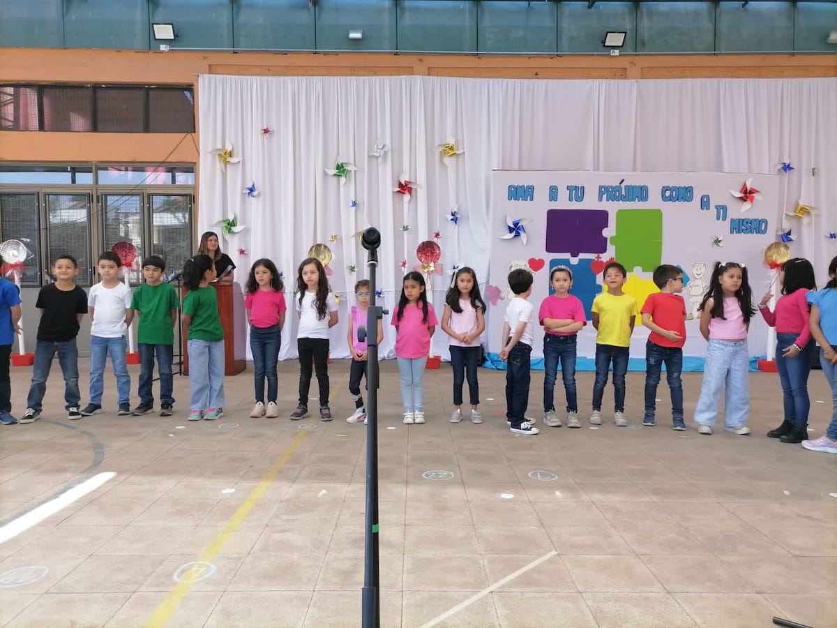 Por ello, en los actos de cierre del año escolar, nuestros apoderados pudieron disfrutar de bailes y cantos realizados por nuestros estudiantes que apuntaban a este valor, y también se reconocieron sus esfuerzos y éxitos en los ámbitos académico, deportivo y valórico. Nuestros estudiantes de cuarto básico y octavo básico, que demostraron su adhesión a los valores de nuestra Congregación, recibieron la medalla Padre Damián y Virgen de la Paz, respectivamente.