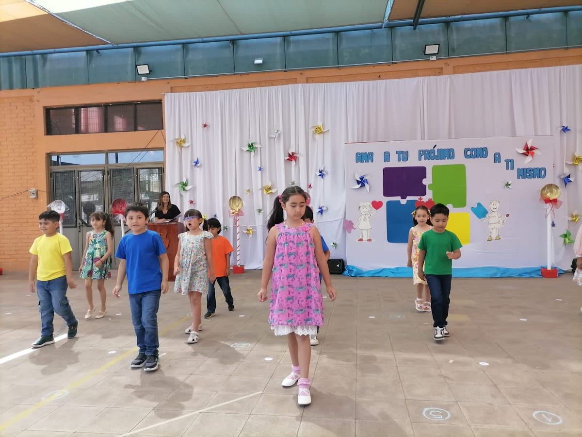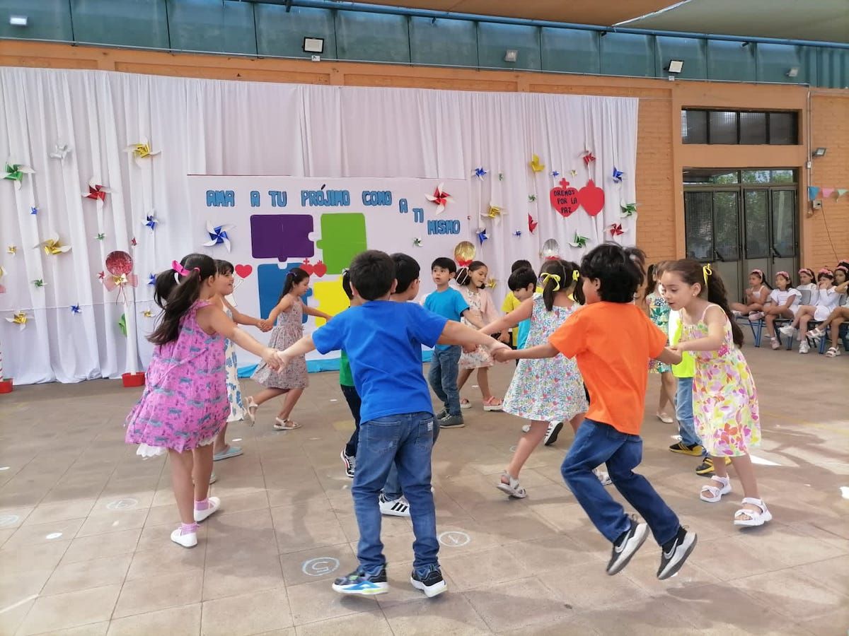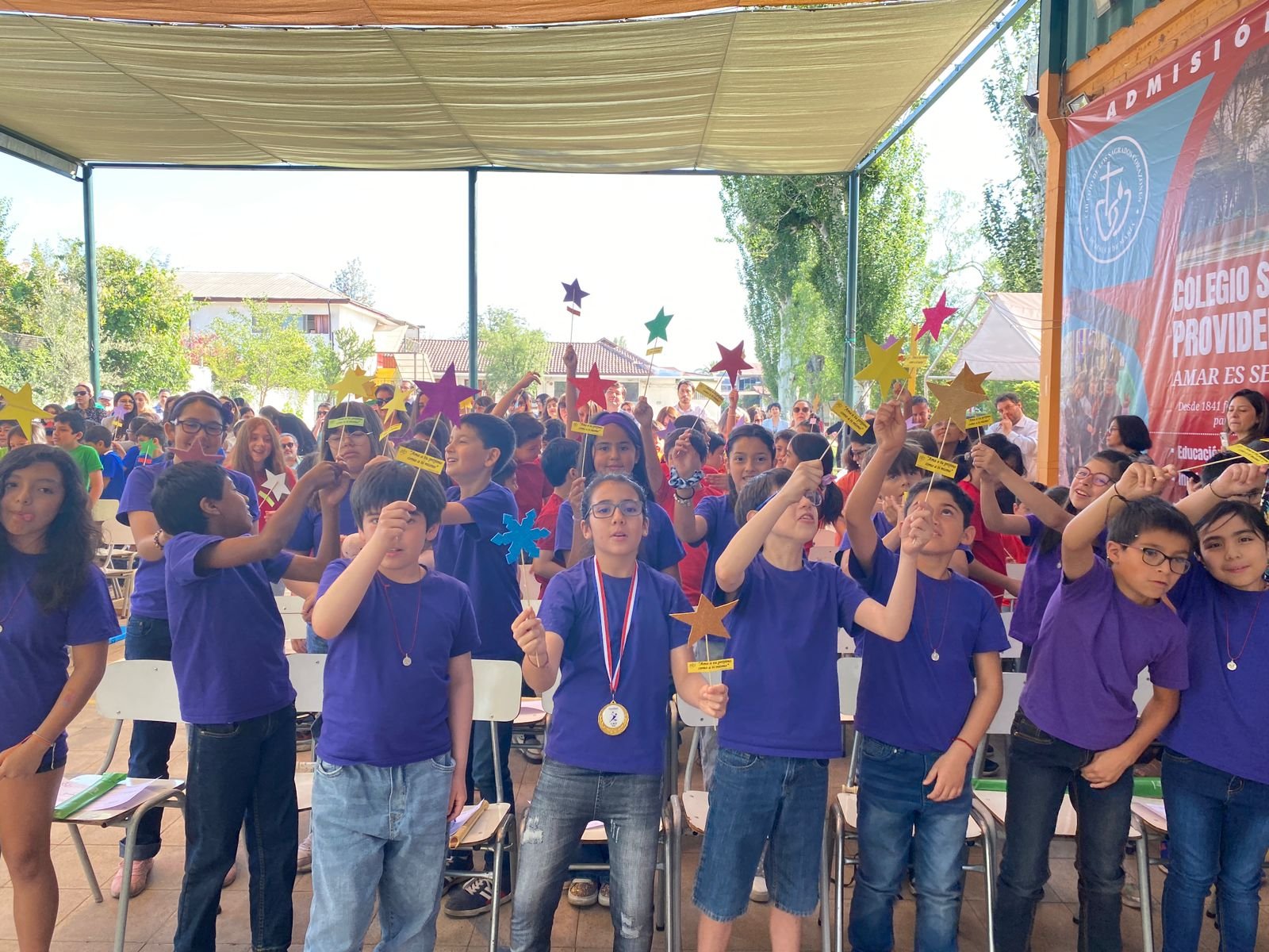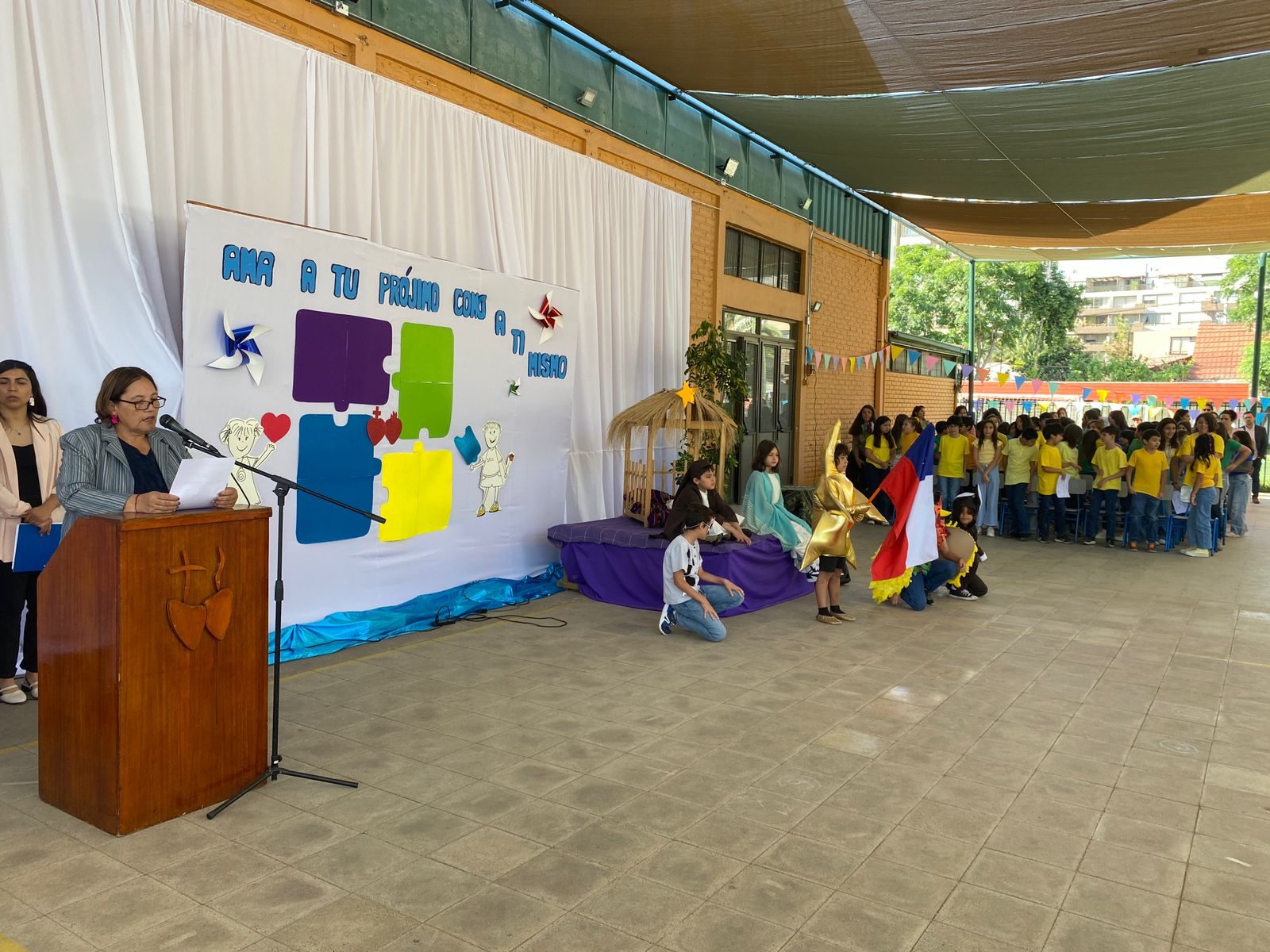 Por ello, en los actos de cierre del año escolar, nuestros apoderados pudieron disfrutar de bailes y cantos realizados por nuestros estudiantes que apuntaban a este valor, y también se reconocieron sus esfuerzos y éxitos en los ámbitos académico, deportivo y valórico. Nuestros estudiantes de cuarto básico y octavo básico, que demostraron su adhesión a los valores de nuestra Congregación, recibieron la medalla Padre Damián y Virgen de la Paz, respectivamente.