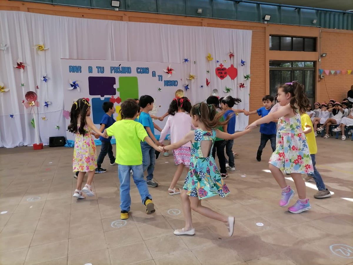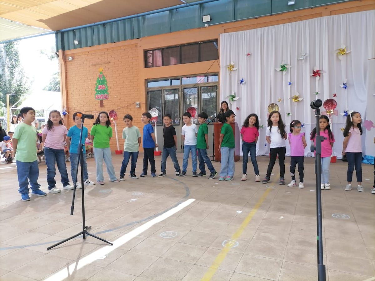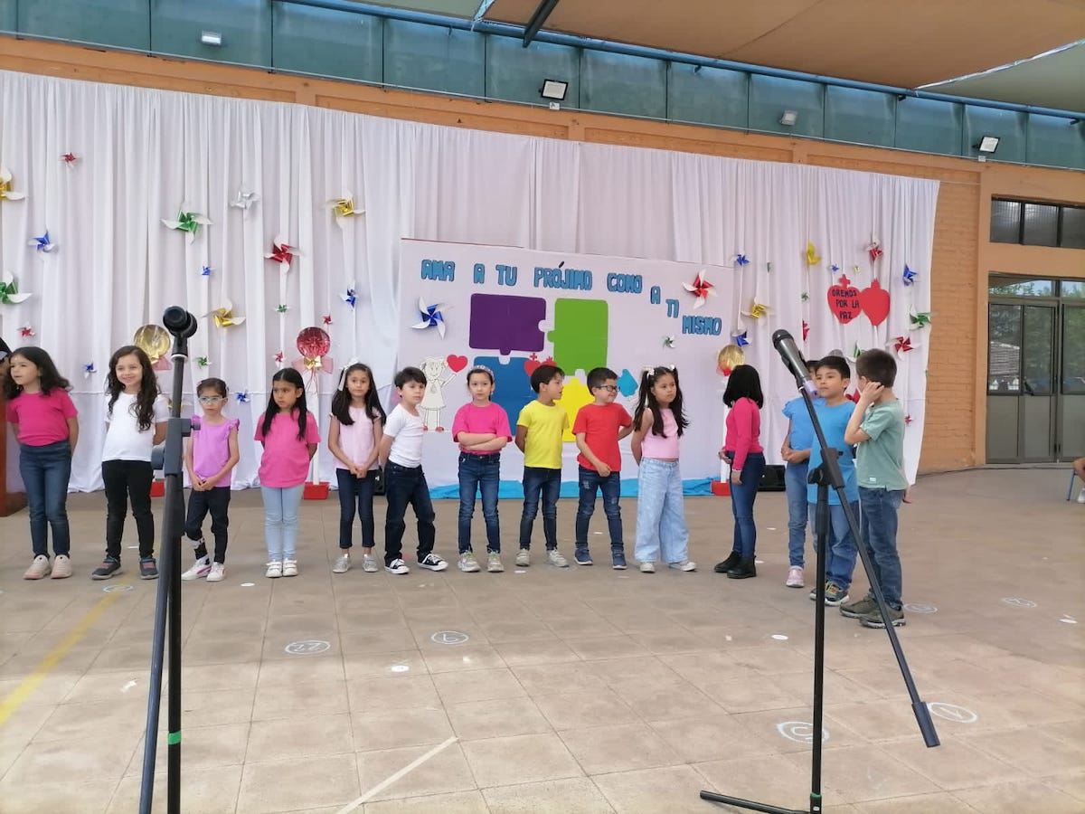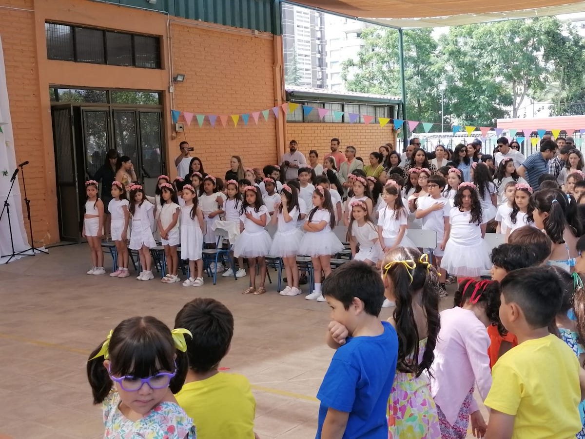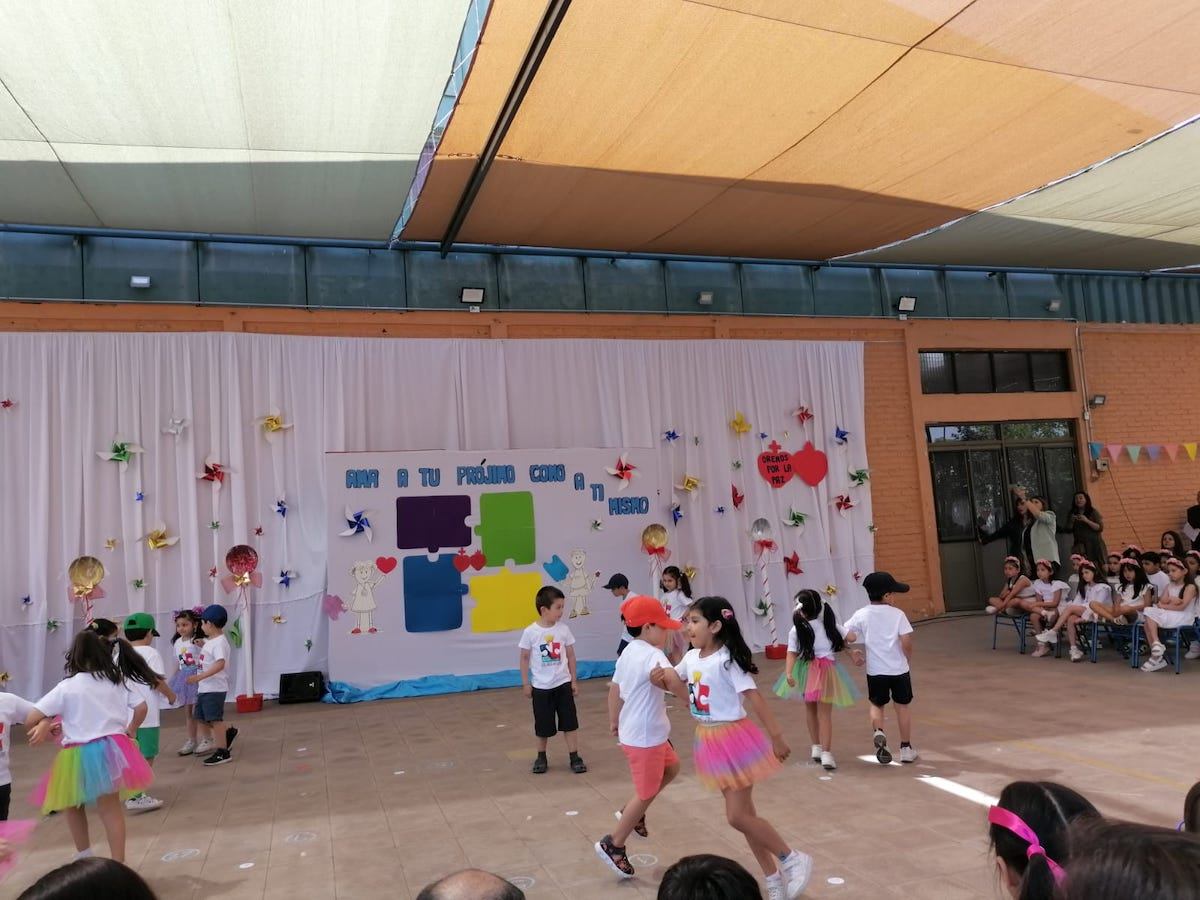 Por ello, en los actos de cierre del año escolar, nuestros apoderados pudieron disfrutar de bailes y cantos realizados por nuestros estudiantes que apuntaban a este valor, y también se reconocieron sus esfuerzos y éxitos en los ámbitos académico, deportivo y valórico. Nuestros estudiantes de cuarto básico y octavo básico, que demostraron su adhesión a los valores de nuestra Congregación, recibieron la medalla Padre Damián y Virgen de la Paz, respectivamente.