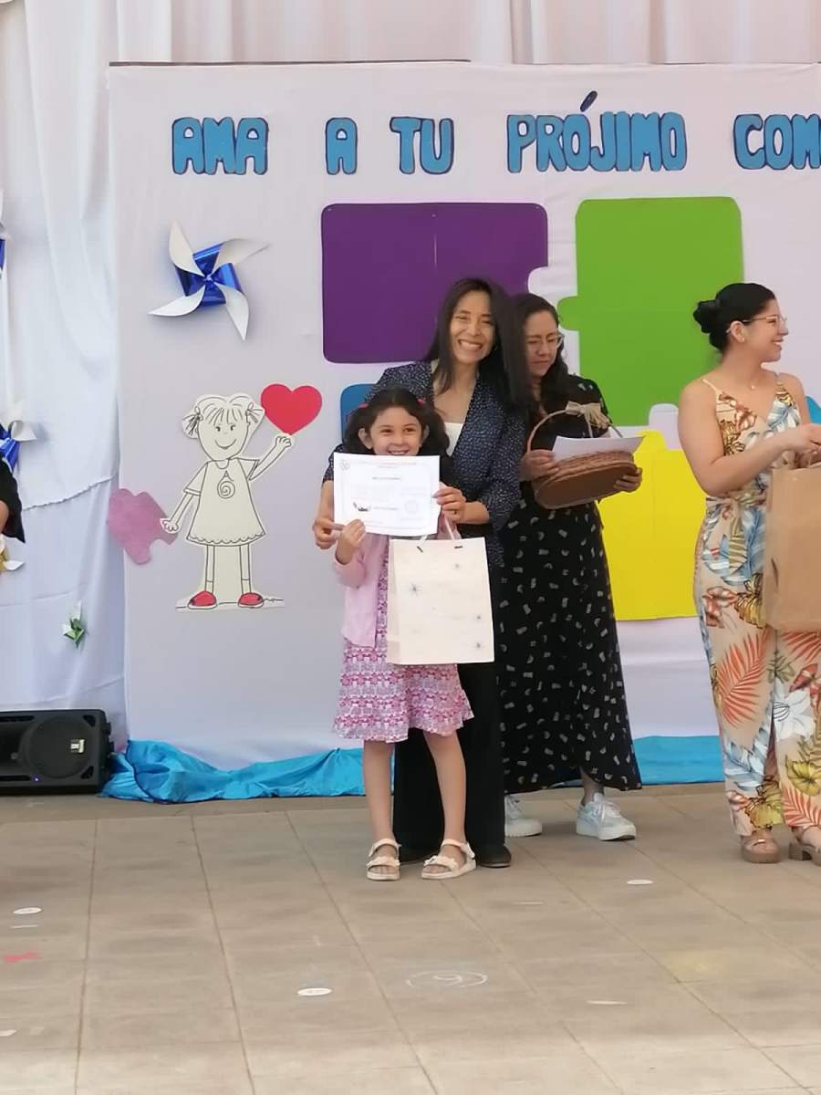 Cada curso eligió al o los compañeros que acogen y ayudan a los demás, dándoles el premio a la fraternidad. También fueron premiados los logros académicos, para aquellos estudiantes que obtuvieron los mejores promedios anuales, así como de excelencia académica a los mejores promedios por ciclo. Asimismo, los triunfos deportivos, que fueron muchos, fueron reconocidos y sus copas entregadas a nuestra directora, quien, en sus palabras, destacó el esfuerzo, perseverancia y logros de nuestros estudiantes.