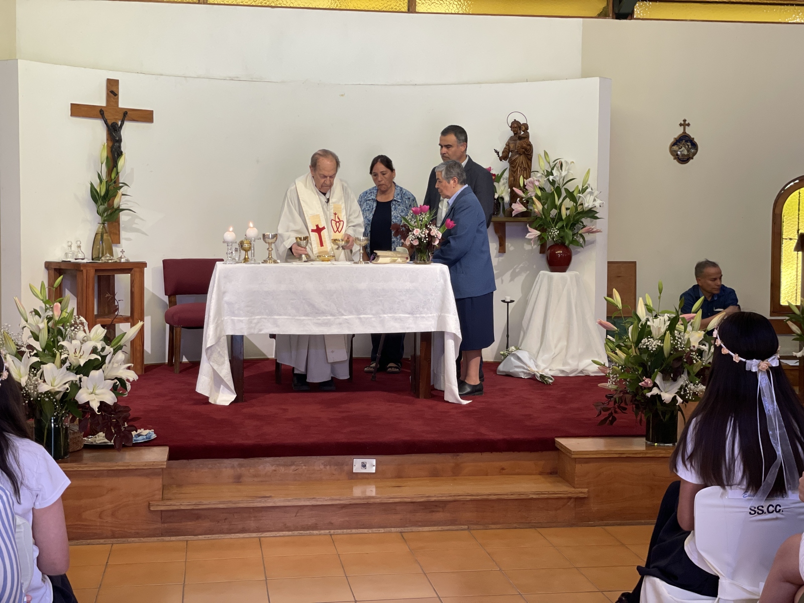 Fueron 23 las niñas y niños que comienzan este camino de amistad con Jesús, como bien lo recordó en su homilía el sacerdote que presidió la celebración, nuestro hermano de congregación el padre José Vicente Odriozola, quien insistió en que la amistad con Jesús es necesario hacer gestos que aumenten la amistad, porque es necesario cultivarla. “Están sellando esta amistad, y para eso deben rezarle a Jesús todos los días y conversar con él. Como en la lectura que escuchamos (multiplicación de los panes), en la que Jesús le pide a los discípulos que se sienten y repartan el pan. Ellos confiaron y alcanzó para todos. Esa es la fe”, concluyó.