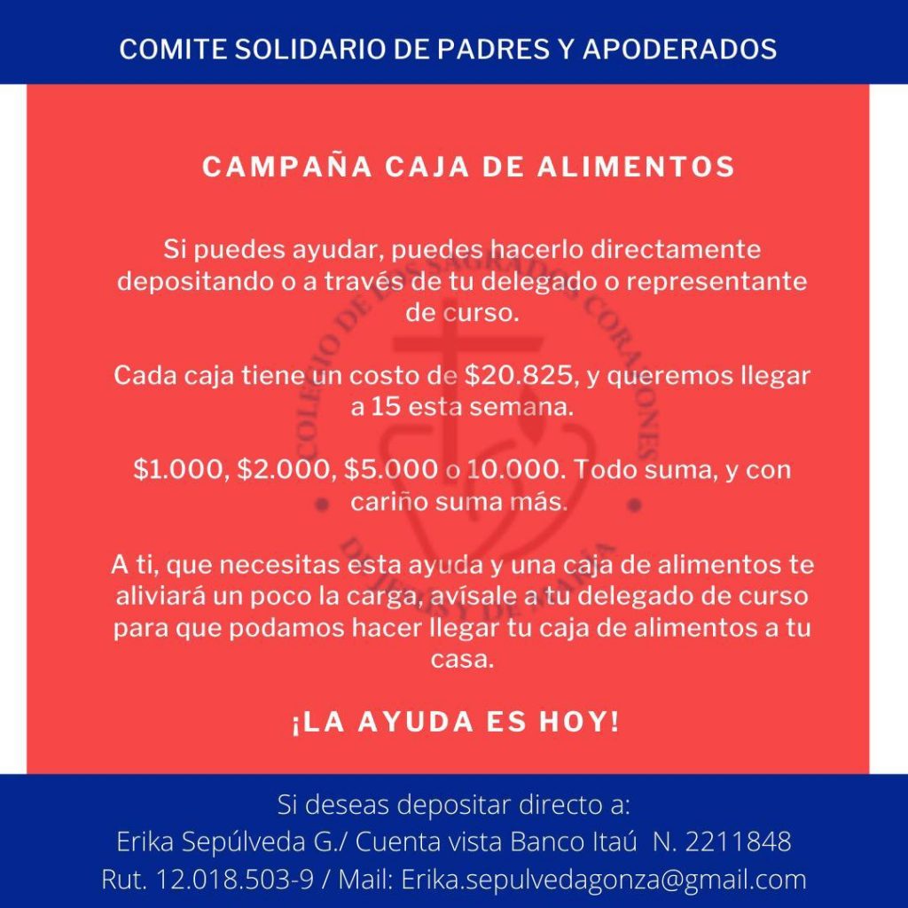 - Los delegados/representantes/delegado de pastoral que tengan información de familias que requieran el aporte, favor avisar a Francisca Celedón al mail: francisca@clbconsultores.cl