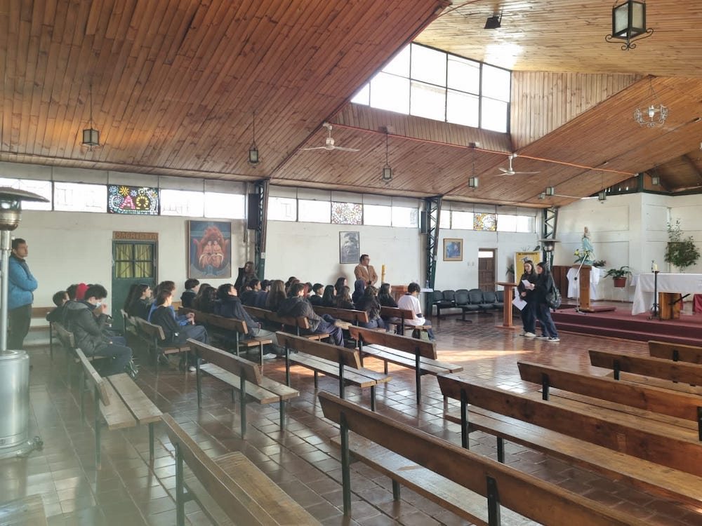 Al terminar el desayuno, que en algunos cursos fue bastante generoso, subieron a los buses rumbo a distintos destinos de la ciudad, mientras los más pequeños se quedaron en un recorrido al interior del colegio que consistió en “contemplar”; en una oración en la capilla, “vivir”; confeccionando un altar personal de los Sagrados Corazones y “anunciar” hermoseando un sencillo lienzo con la frase: “Los SS.CC. somos: familia, fraternidad y comunión”, que fue colgado en el frontis del colegio.