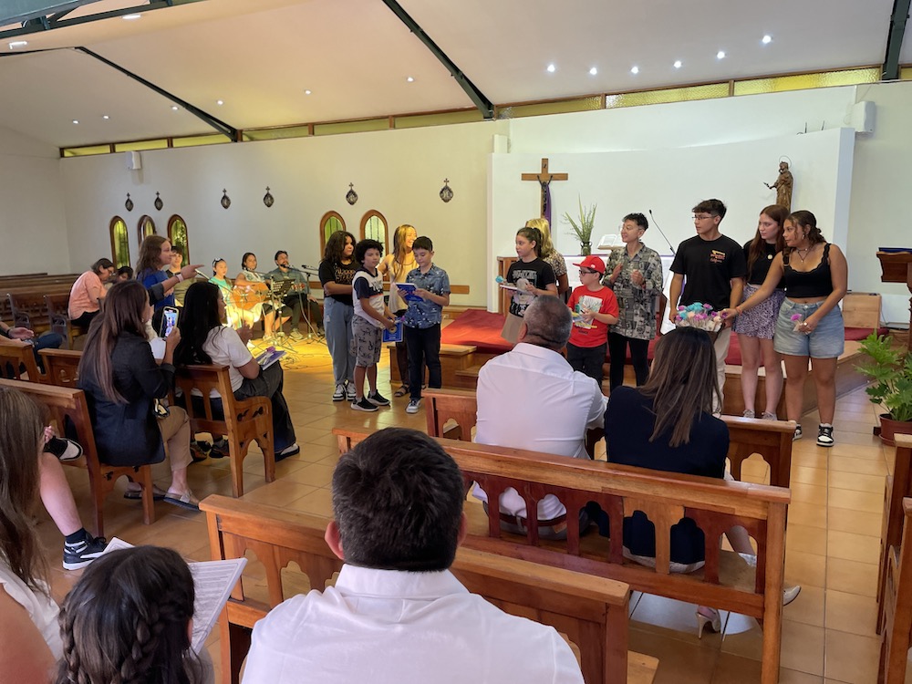La mañana del jueves, en tanto, vivimos la liturgia de bienvenida a las familias nuevas que se integran a la comunidad este año. Es una tradición recibir, quienes trabajamos en el colegio, a quienes llegan por primera vez al colegio con una hermosa y significativa liturgia llena de los signos del colegio y de la Congregación de los Sagrados Corazones.