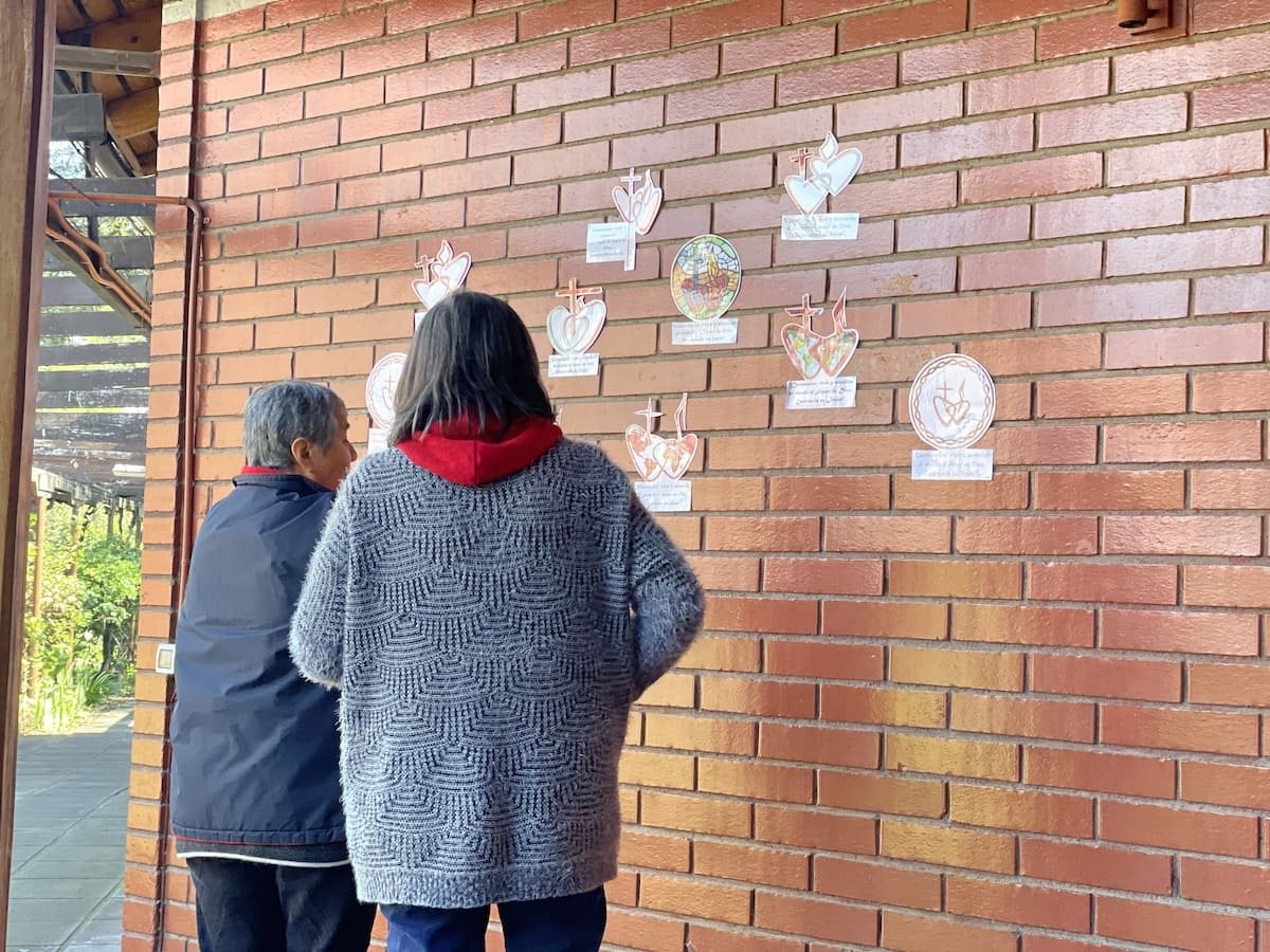 La tarde fue para preparar material que iban a compartir en la salida que se realizó a la plaza Los Dominicos y a la estación del metro. El objetivo era vivir el principio del carisma de la congregación de anunciar el amor de Dios para experimentar este lema de ir al corazón del mundo, saludando a quienes pasaban y entregándoles un mensaje de esperanza a través de una frase y estampitas de los Sagrados Corazones. Al regresar recogimos lo vivido y compartimos lo que fue la salida para las y los jóvenes.