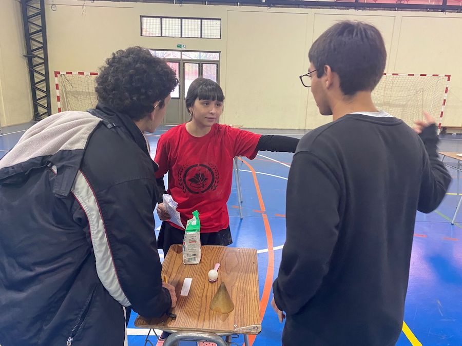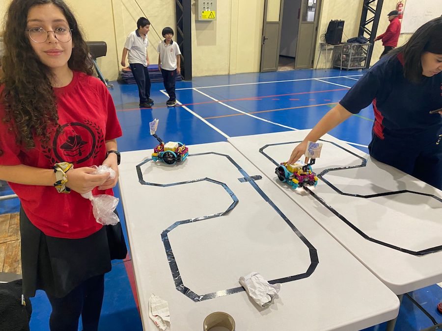 Mientras los más pequeños disfrutaban de actividades lúdicas y un concurso de cálculo mental, los estudiantes de 7º a III medio también jugaban en el gimnasio: una foto con Pitágoras, arquería matemática y probar suerte con los robots creados en el taller de robótica fueron algunas de las actividades de este bloque.