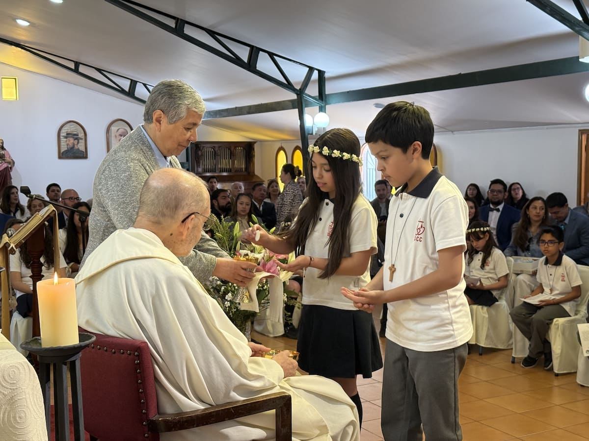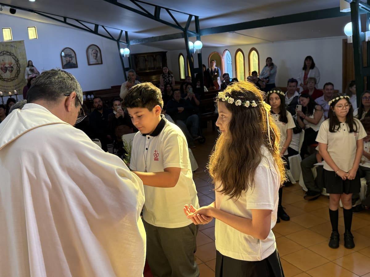 A las 11 de la mañana del domingo el 5º C llegó para celebrar esta iniciación a la vida eucarística acompañados de Sergio Silva ss.cc. En su homilía, invitó a las familias a relevar estos momentos tan decisivos que impactan la vida de los niños y niñas.