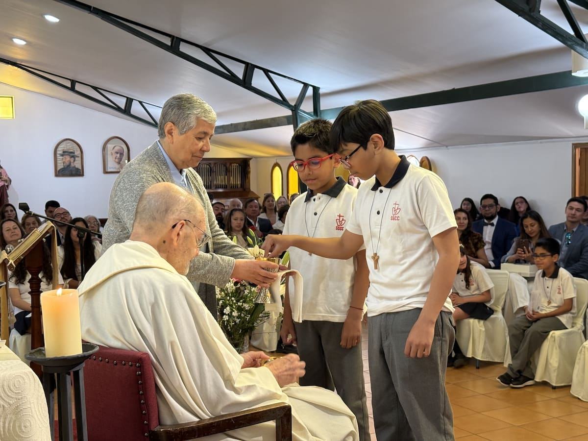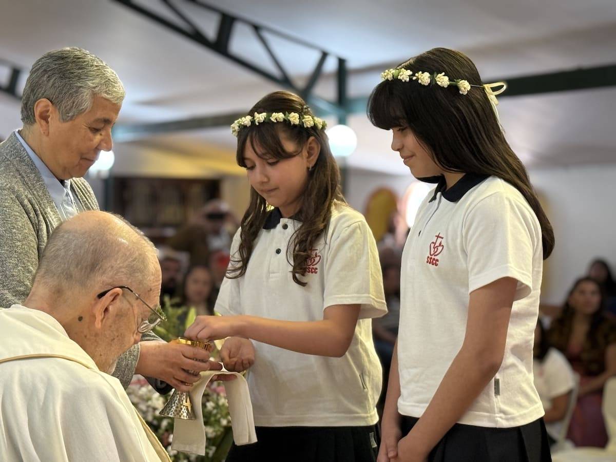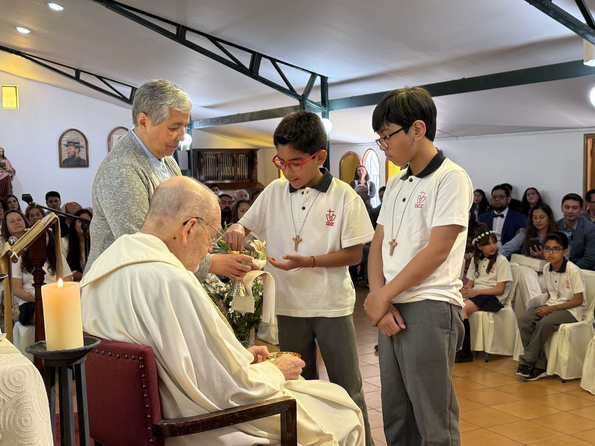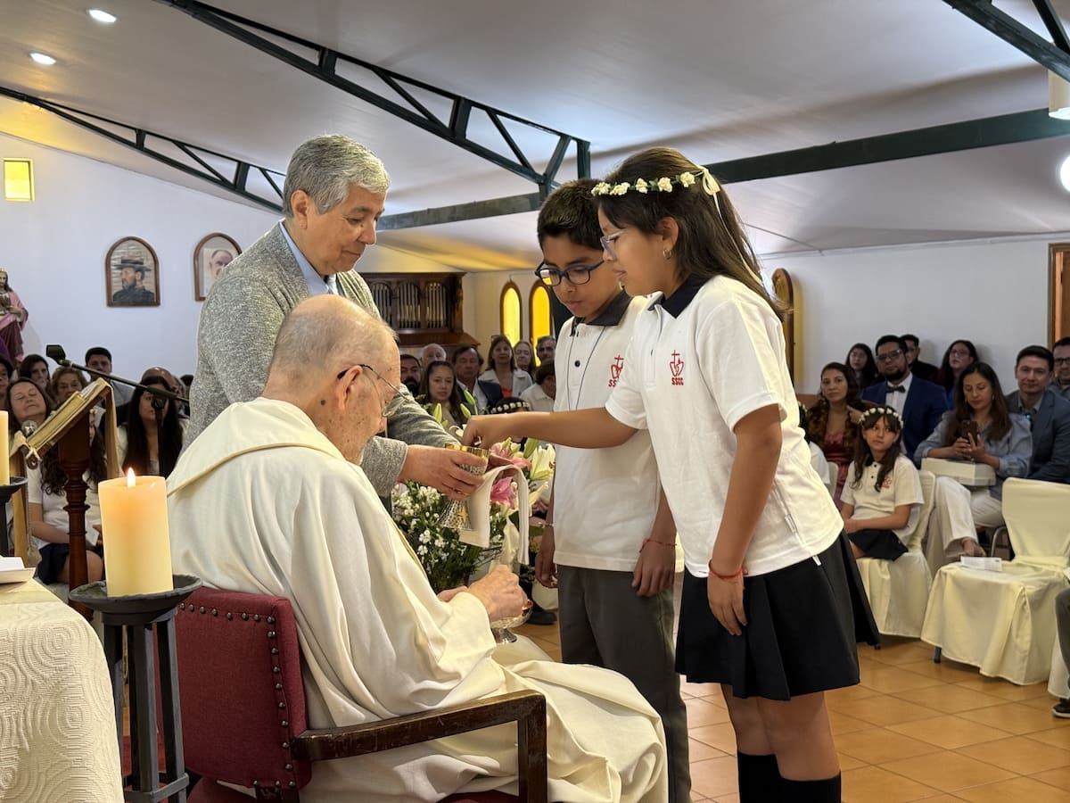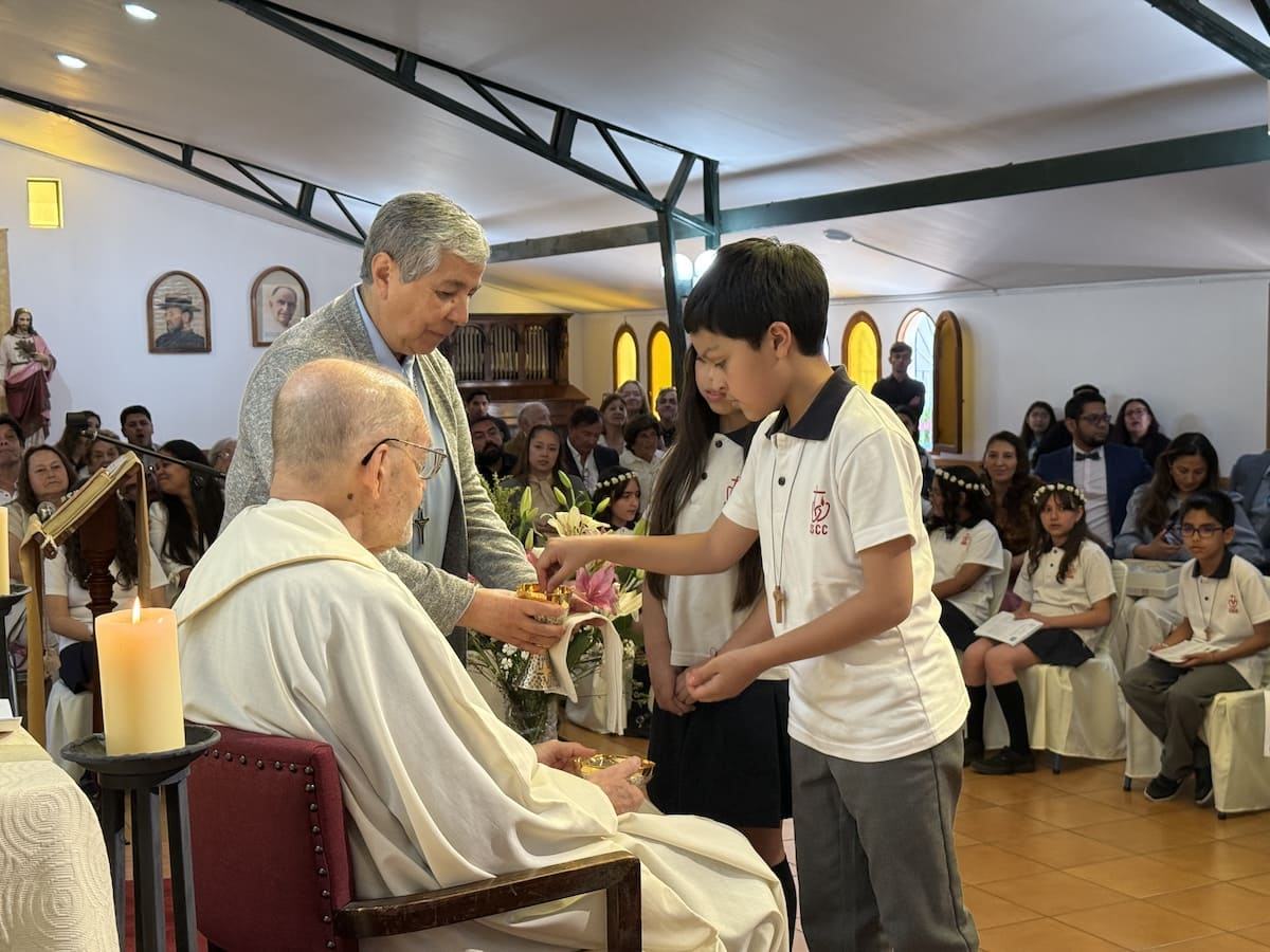 El sábado en la tarde fue el turno del 5º básico A y el domingo a las 9 de la mañana del 5º básico B. Ambas fueron presididas por el hermano Mario Soto ss.cc. quien mantuvo entusiasmados a los pequeños haciéndoles preguntas y conversando lo que significa la oración y el amor de Jesús en sus vidas.
